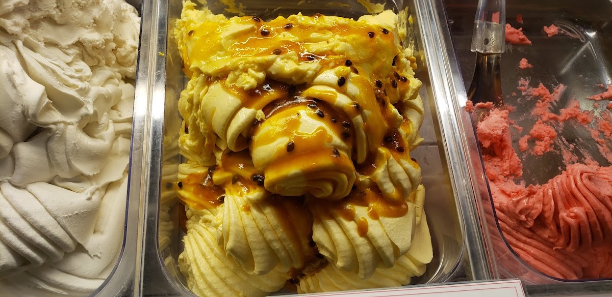 Good gelato store in Great location. Lots of flavors to choose from. Good customer service. They allow sampling before buying. There's a couple of seats and a small bench inside.